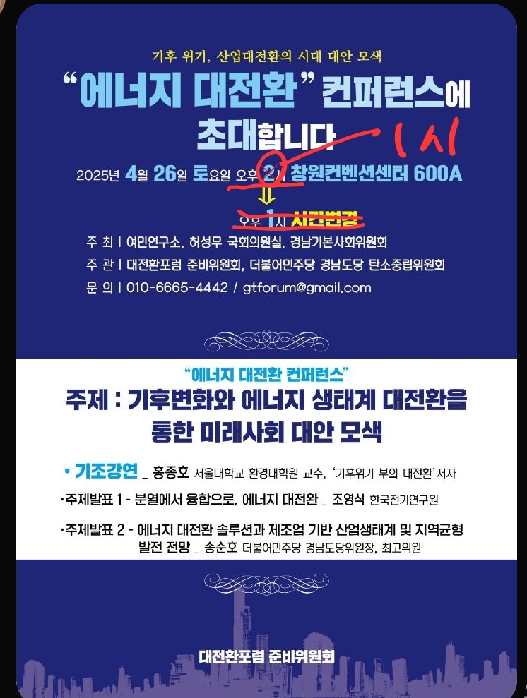 주관: 대전환포럼 준비위, 더불어민주당 경남도당 탄소중립위