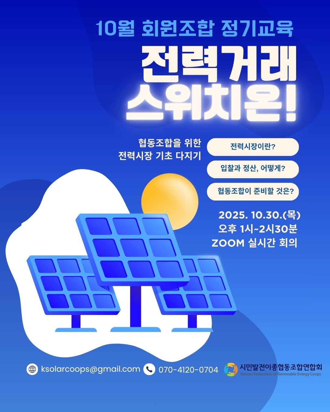 [시민발전이종협동조합연합회 이송란 교육팀장]이 어제 241024 협동조합을 위한 전력거래 기초 다지기 교육 안내를 연합회 단톡방에 공지했기에 공유합니다.