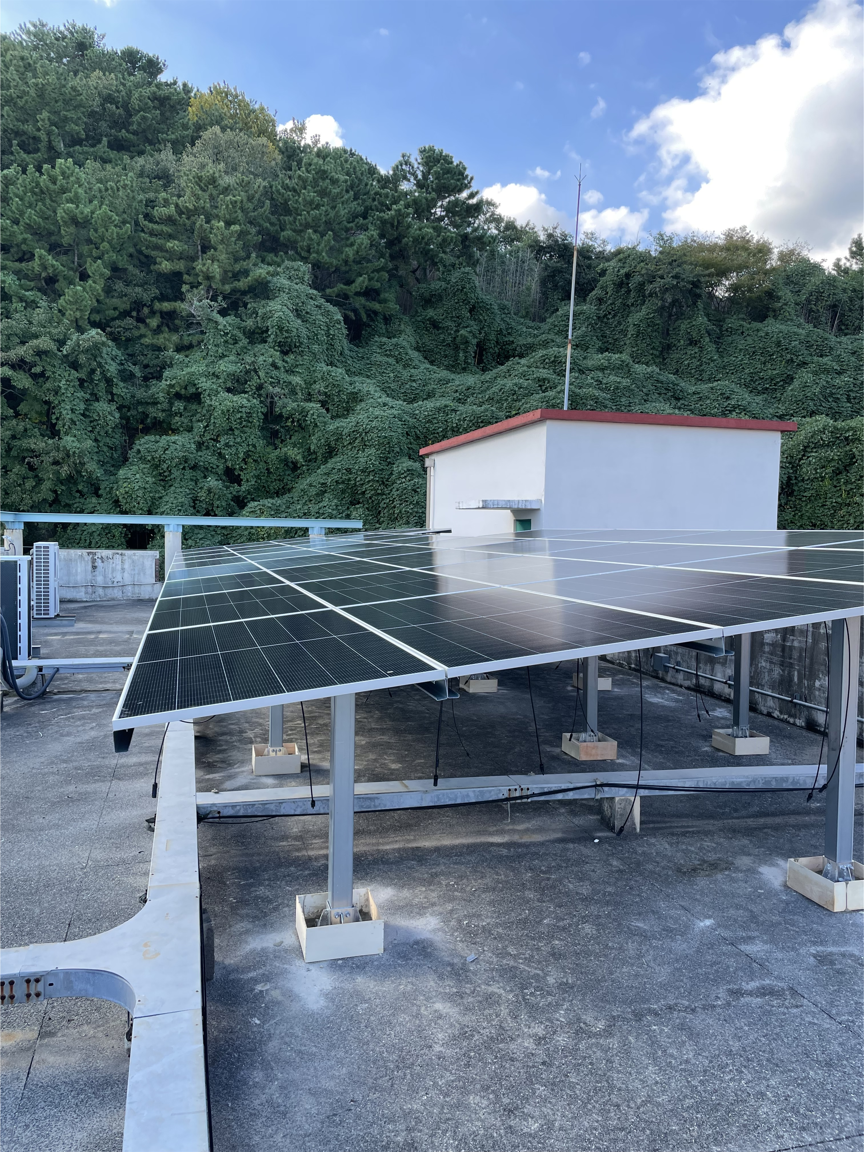 남해 미조중 햇빛발전소 시공업체 대성쏠라가 몇일 전에 보내준 사진입니다. 10월 하순의 정경(?) 미조중학교 옥상에 태양광 패널 모듈이 설치되어 있는 모습, 10월 하순 높고 푸른 가을 하늘이 인상적입니다. 10월 31일, 미조중을 방문한 이사장님의 말씀으로는 패널은 다 설치되었고, 인버터를 올리는 상황이었다고 하고 패널을 받치는 기둥이 약하여 교장선생님이 보완을 요구해 몇군데 기둥이 추가되었다고 합니다, (바람이 많이 부는 위치라 교장선생님께서 걱정을 많이 하셨다고 합니다.) 모니터는 아직 설치되어 있지 않았고 발전소 명판도 조합에서 준비해 설치해야 할 것같다고 합니다. 전체 공사가 순조롭게 마무리되어 조만간 햇빛발전을 본격적으로 하게 되길 기대합니다.