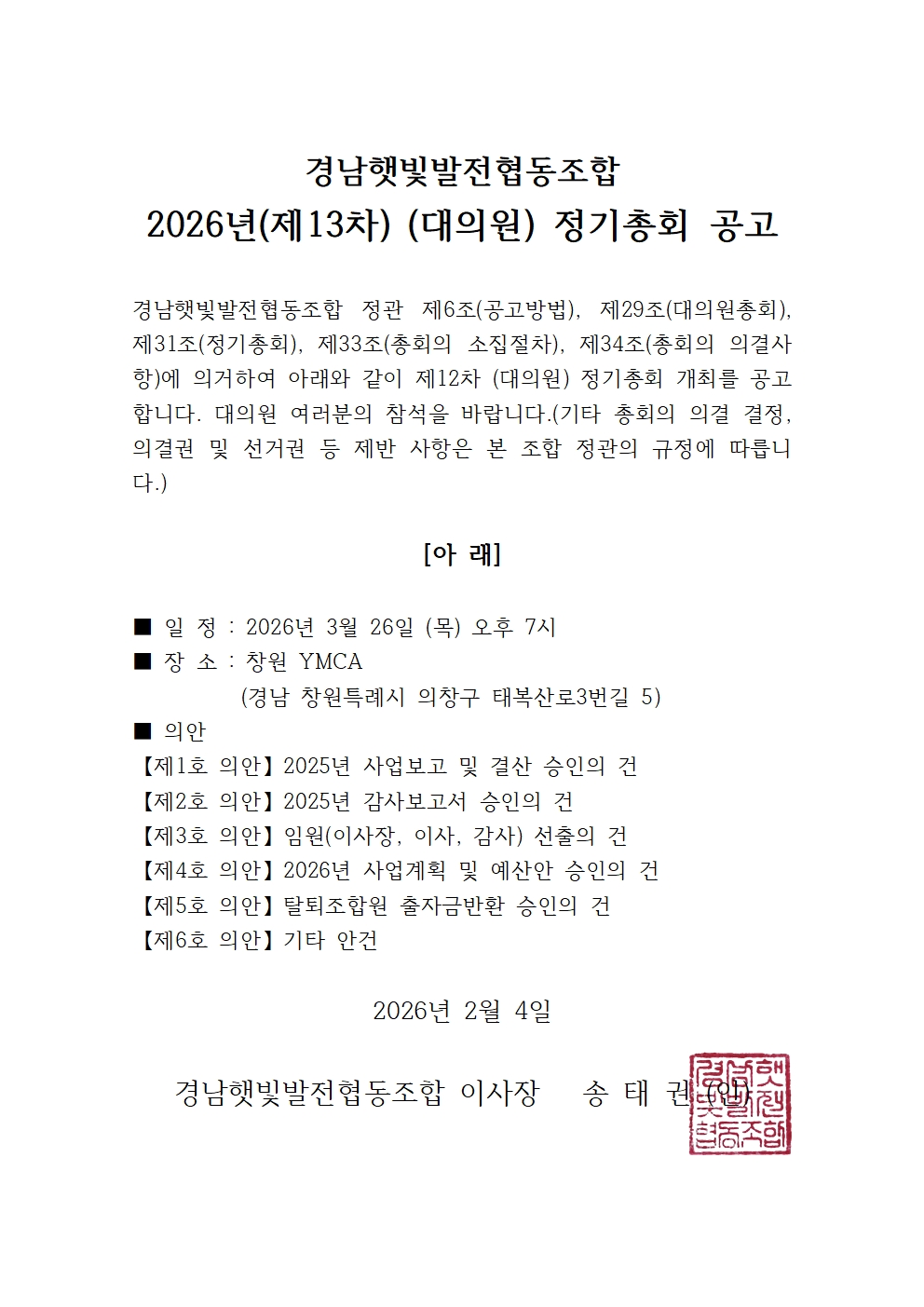 | 2026년(제13차) (대의원) 정기총회 공고 (0) | 2026.02.06 |